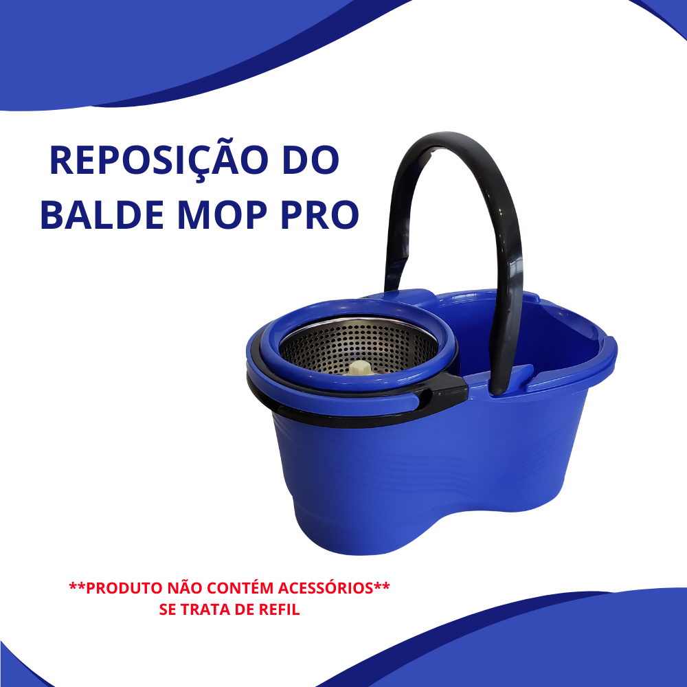 Refil Somente Balde e Centrífuga Mop Pro Azul 360° Cesto Inox Alça Reforçada Pisos