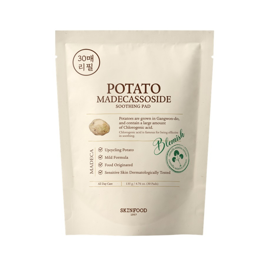 [REFIL] SKINFOOD Disco De Algodão Com Tônico (Cenoura / Batata / Salsa / Bolota) 4 Tipos, 30 Unidades [REFILL] SKINFOOD Toner Pad (Cenoura / Batata / Salsa / Bolota) 4 Types, 30 Sheets Skin type : All skin Product Specifications : for all skin type Volume/Weight : 30 sheets/135g Best Before : 36 months from the date of manufacture / 6 months after opening Country of Manufacture : South Korea How to Use : After washing your face, attach it to both cheeks or areas that need soothing. After about 5 to 10 minutes, gently wipe the entire face except for the eye area and lightly tap the remaining essence to absorb. Cautions : 1) When using cosmetics or after use, consult with a specialist if there are any abnormal symptoms or side effects such as red spots, swelling, or itching in the area of use due to direct sunlight. 2) Refrain from using the product in areas with scars, etc. ) Precautions for storage and handling A) Keep out of reach of children B) Store away from direct sunlight 4) Avoid use around eyes