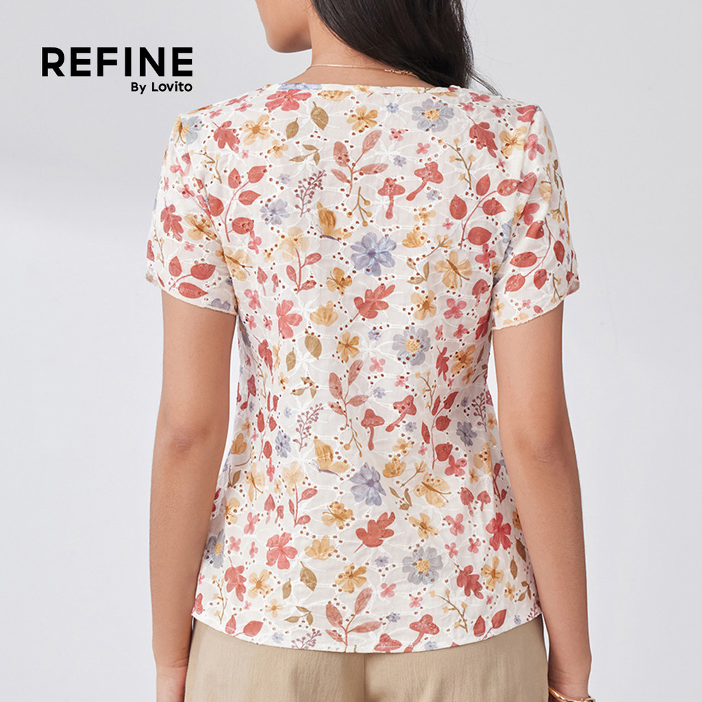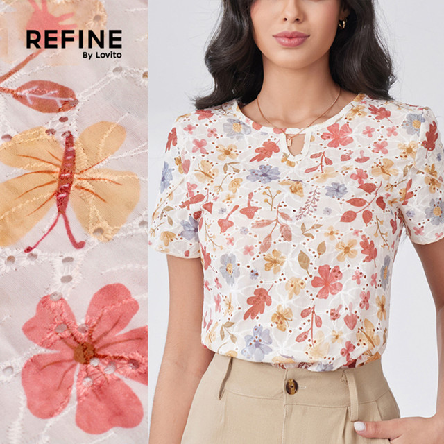 (Refine by Lovito) Blusa Elegante com Padrão de Recorte Blusa Primavera/verão para Mulheres. LR32L030