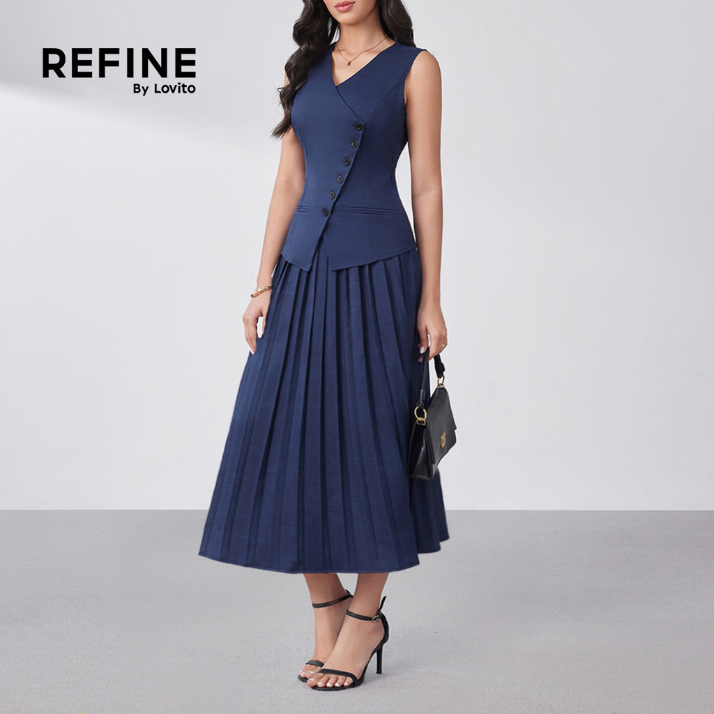 (Refine by Lovito) Elegantes tops o pantalones azul marino de primavera/verano para mujer LR32L038