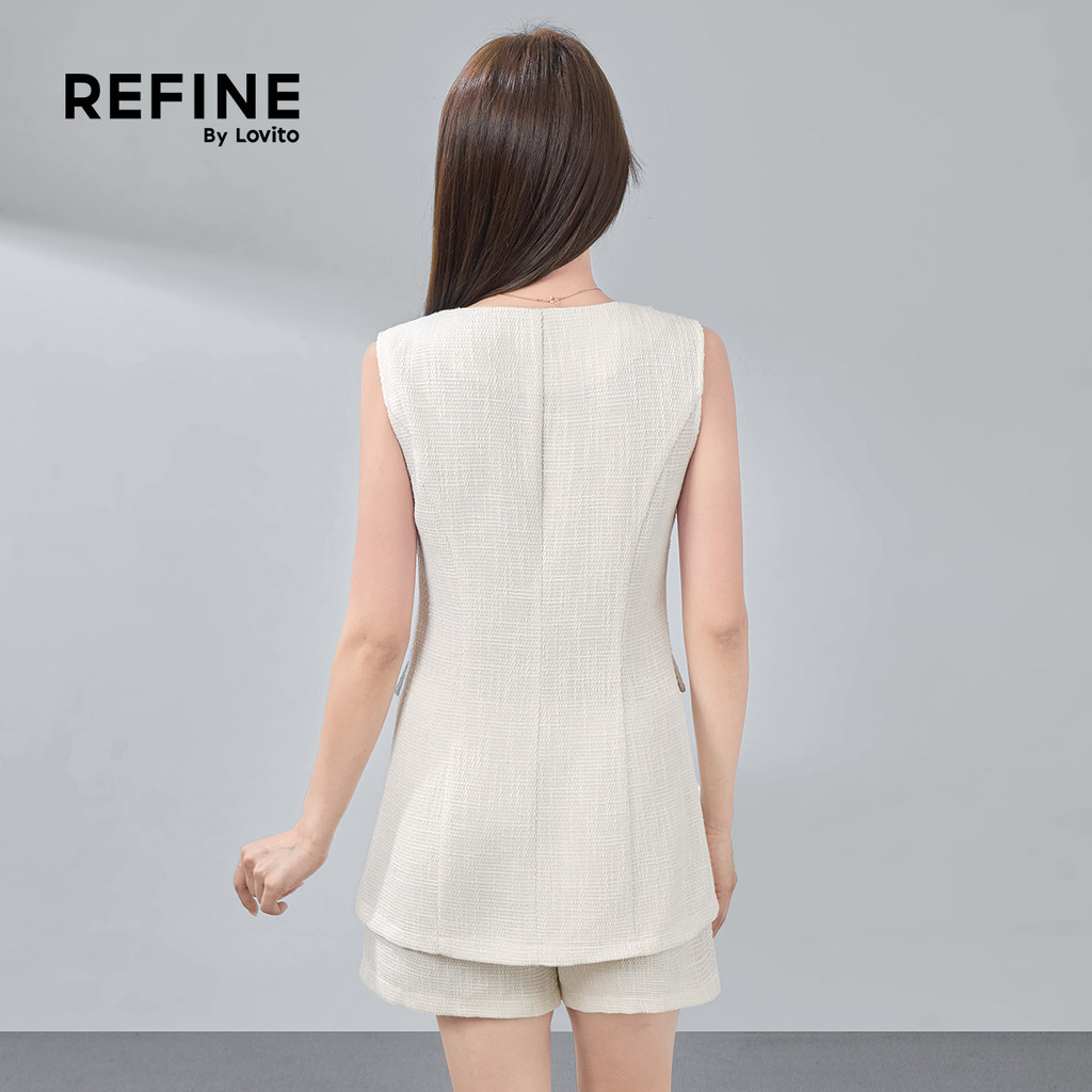 (Refine by Lovito) Tops ou Bottoms Bolso Falso Botão Dividido Primavera/verão Terno Off-white para Mulheres LR32A067