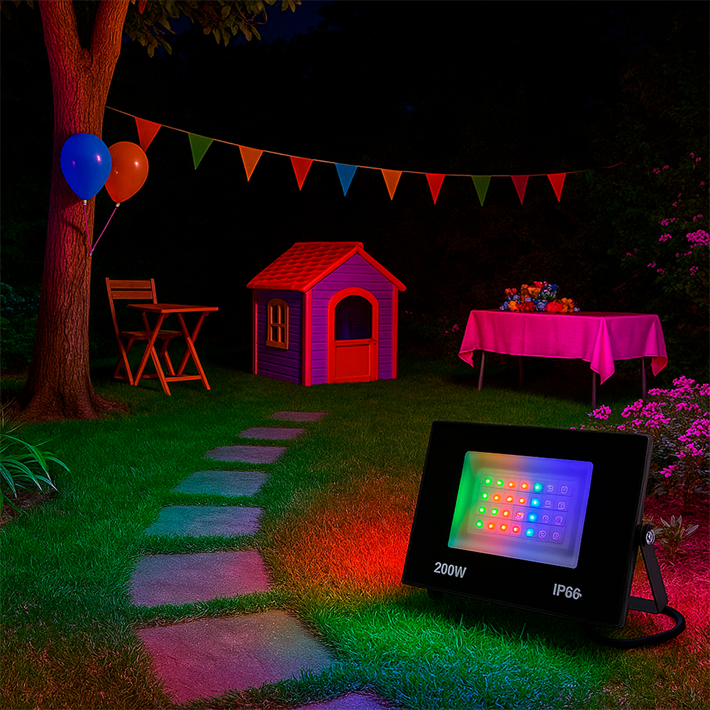 Refletor Holofote Led 200w Bivolt Luz Rgb Colorido Com Controle Prova D'água