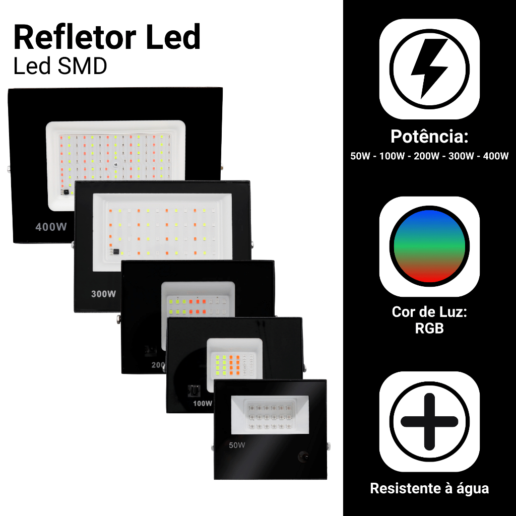 Refletor Led Holofote Rgb Colorido 50w/100w/200w/300w/400w Bivolt C/ Controle