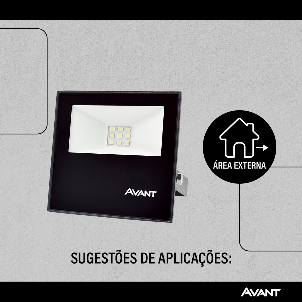 Refletor Slim IP65 - Iluminação Externa de Alta Performance A linha Refletor Slim IP65 da Avant oferece soluções de iluminação externa de alta qualidade para projetos comerciais, corporativos e residenciais. Com design moderno e tecnologia LED avançada, os refletores Slim proporcionam iluminação eficiente e duradoura. Propriedades: Corpo em alumínio e difusor em vidro, garantindo resistência e durabilidade. Driver incorporado, simplificando a instalação e otimizando o desempenho. Não emite raios ultravioleta, protegendo objetos da descoloração. Fluxo luminoso constante em toda faixa de tensão, assegurando iluminação uniforme. Livre de mercúrio, contribuindo para a sustentabilidade. Baixo consumo de energia, reduzindo o impacto ambiental e os custos com eletricidade. Características de Funcionamento: Temperatura de operação: -5°C a 40°C, ideal para diversos climas. Tensão de entrada: 100V a 240V, compatível com a maioria das redes elétricas. Fator de potência: =0,50 (Slim 10, 20, 30, 50 garantindo eficiência energética. Tipo de instalação: Sobrepor, facilitando a instalação em diferentes superfícies. Dimensões e características: -10w: Fluxo Luminoso: 750lm Dimensões: 91 x 90mm -20w Fluxo Luminoso: 1500lm Dimensões: 81 x 79mm -30w Fluxo Luminoso: 2250lm Dimensões: 103 x 89mm -50w Fluxo Luminoso: 3750 Im Dimensões: 138 x 118mm Garantia Oficial: A Avant oferece garantia de 12 meses para defeitos de fabricação em seus produtos. Para obter mais informações sobre a garantia, consulte o manual do produto ou entre em contato com o atendimento ao consumidor da Avant. Sobre a Avant: A Avant é uma empresa líder no desenvolvimento e fabricação de soluções de iluminação LED de alta qualidade. Com foco na inovação, a Avant busca oferecer produtos eficientes, duráveis e ecologicamente corretos. A marca se destaca pela qualidade de seus produtos, design moderno e atendimento personalizado, proporcionando a melhor experiência para seus clientes.