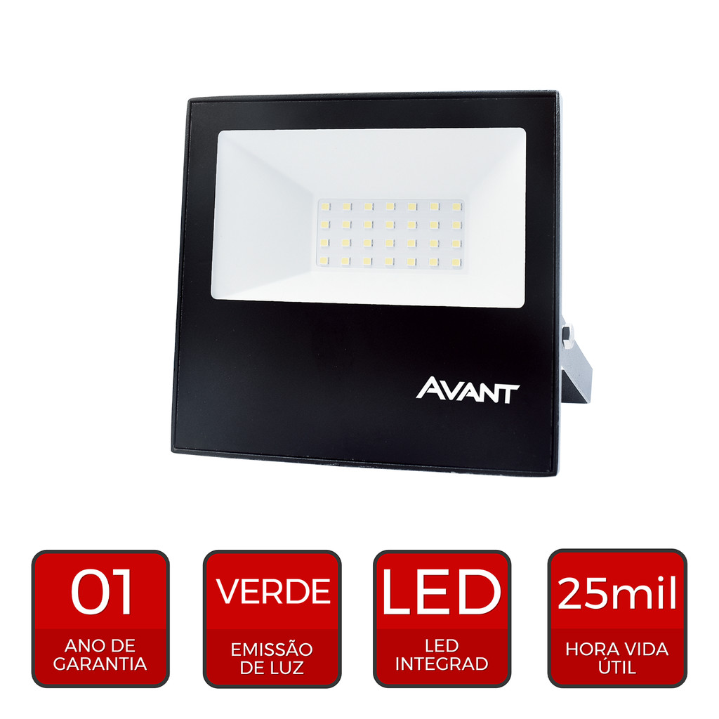 Refletor Led Slim 30w Luz Verde Bivolt Ip65 Avant