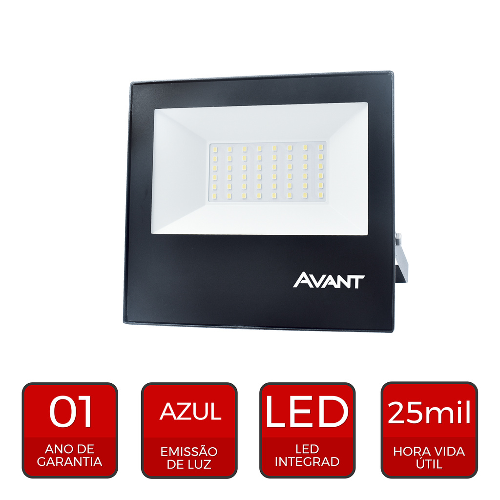 Refletor Led Slim 50w Luz Azul Bivolt Ip65 Avant