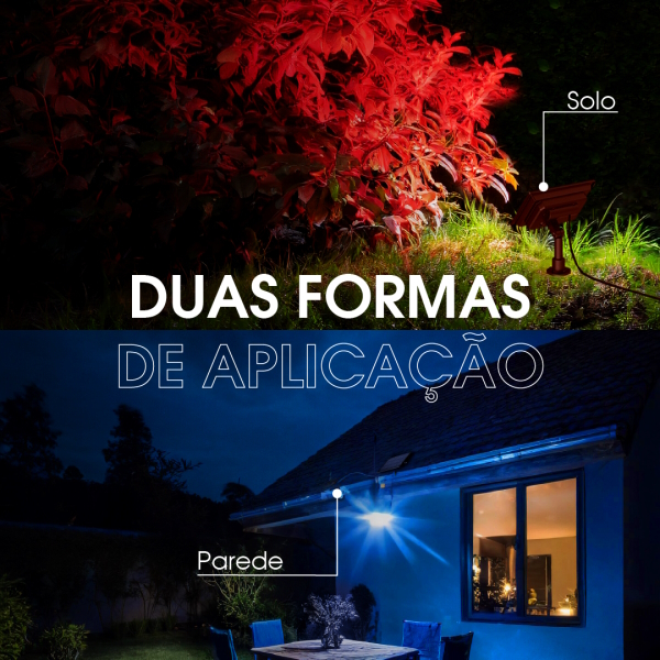 Refletor Solar Jardim 60 Leds 600x Colorida Verde Amarela Azul Branco Frio Spot Luminária Chão Parede