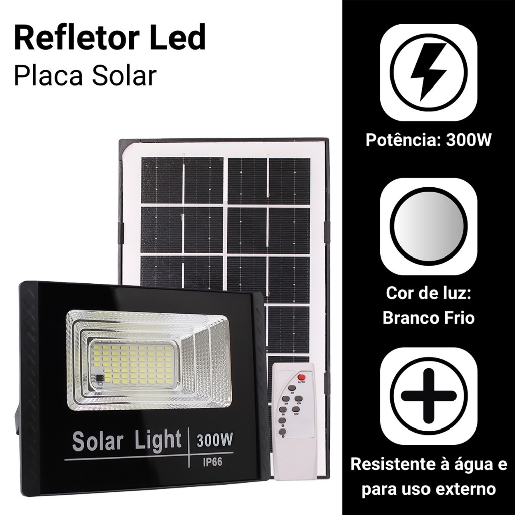 | Refletor Solar Led Holofote 300w Placa Bateria Prova D'água este produto | R$ 79,99 | 82% | 4.8/5 | 465 |