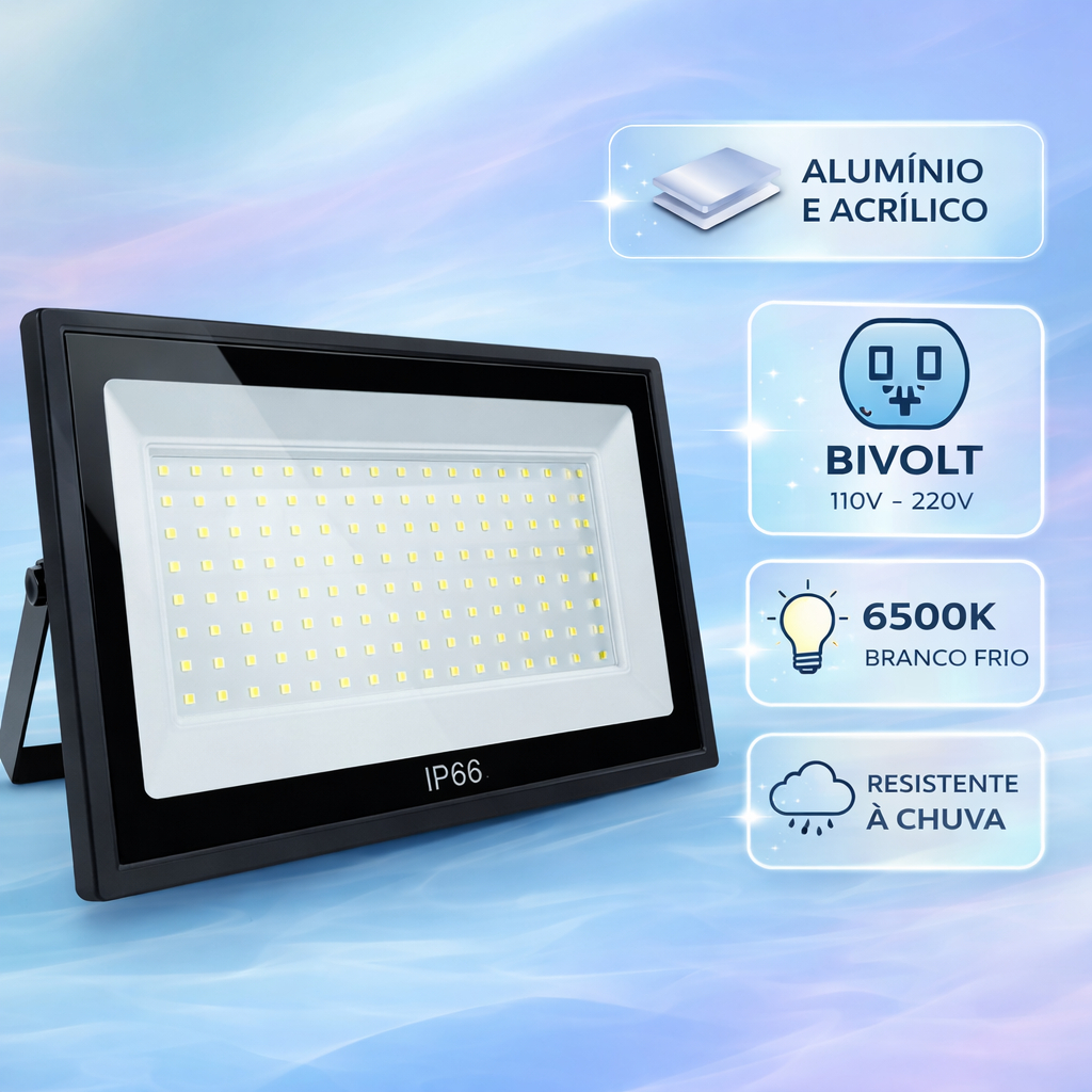 Refletor Super Led Holofote 3000w Branco Frio 6500k Ip66 Bivolt Prova D'água 6500K