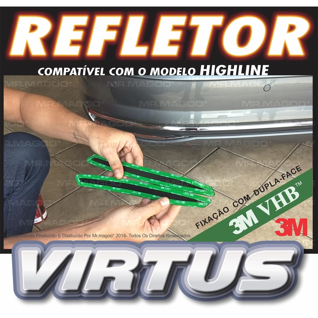 Refletor VW VIRTUS HIGHLINE com Fixação Dupla Face 3m Original MRMAGOO Acessórios para Carro