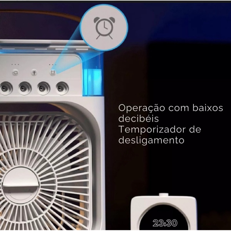 Climatizador Portátil – Umidificador, Luz de LED e Controle Ajustável Mantenha o ambiente sempre agradável com o Climatizador Portátil , um aparelho compacto e eficiente, ideal para refrescar pequenos espaços com praticidade. Principais Características: ✅ Umidificador Integrado – Melhora a qualidade do ar e reduz o ressecamento. ✅ Luz de LED – Proporciona um ambiente mais aconchegante e moderno. ✅ Ajuste de Intensidade – Escolha entre diversos níveis para um resfriamento personalizado. ✅ 3 Modos de Temporização – Programa o tempo de funcionamento conforme sua necessidade. ✅ Controle Simples e Eficiente – Acionamento por botão para facilitar o uso. ✅ Compacto e Portátil – Dimensões ideais para qualquer ambiente (25 X 20cm). Especificações Técnicas: ✔ Potência: 10W - voltagem 110v/ 220 Bivolt ✔ Número de Velocidades: 3 ✔ Peso: 850g ✔ Fonte de Alimentação: USB (cabo acompanhante) ✔ Itens Inclusos: 1 Climatizador, 1 Cabo USB, 1 Manual de Instruções Perfeito para uso residencial, escritórios ou qualquer ambiente pequeno que precise de um toque extra de frescor. Garanta já o seu Climatizador Portátil e diversão de mais conforto no seu dia a dia!