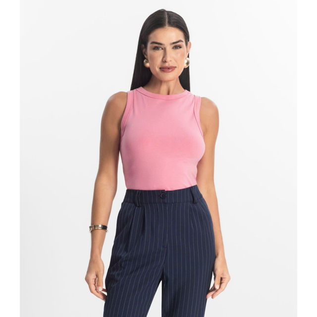 Regata Básica Feminina em Cotton Leve Rovitex Rosa