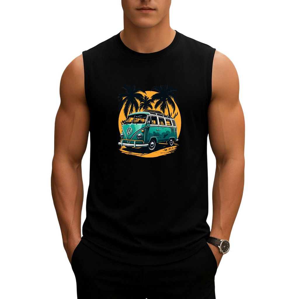 Regata Camiseta Cavada Masculina Estampa Kombi Vintage Praia Verão Algodão Lançamento