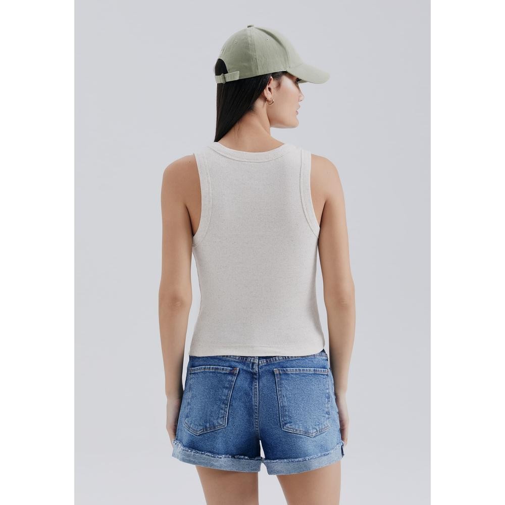 Regata em ribana canelada de linho com decote U. Possui cavas bem desenhadas em ribana aplicada, shape justo ao corpo e comprimento regular.Detalhes da peça:Em ribanaCaneladaModelagem slimAlças largasDecote U
