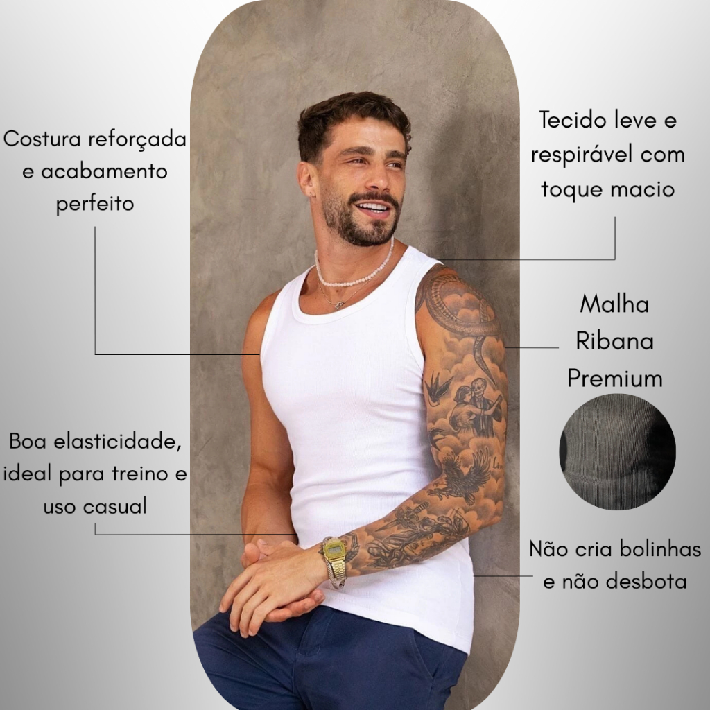 | Regata Canelada Masculina Americana Camiseta Básica Modelo American... este produto | R$ 23,50 | 74% | 4.8/5 | 16 |