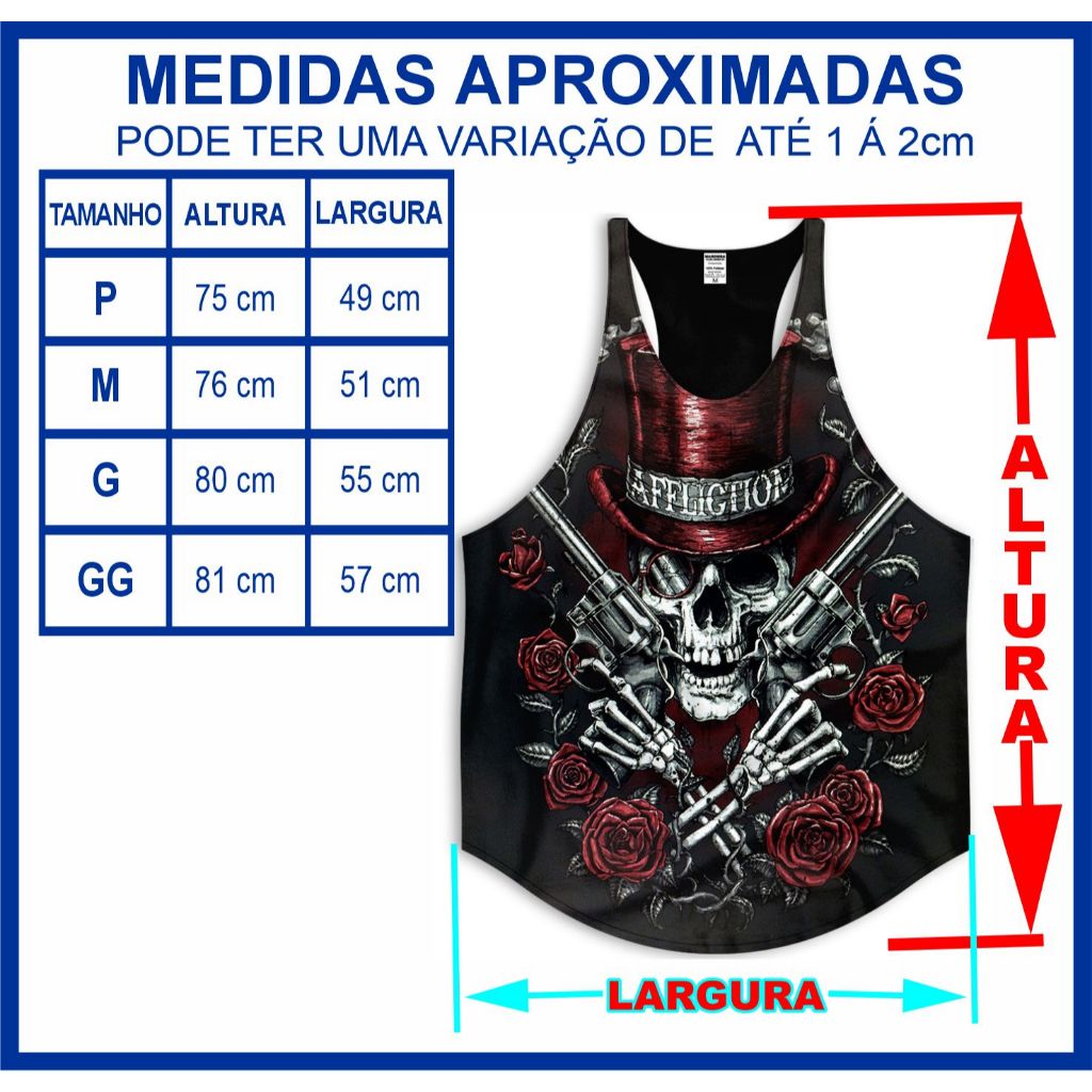 DEK CAMISETAS / DEK SPORTS ATENÇÃO CONFIRA AS MEDIDAS NA TABELA ABAIXO ANTES DA COMPRA Meça uma Regata sua altura e largura, e compare com nossas medidas para assim fazer a compra do tamanho corretamente, para evitar devoluções MEDIDAS APROXIMADAS: P 49 cm (largura) x 75 cm (altura) M 51 cm (largura) x 76 cm (altura) G 55 cm (largura) x 80 cm (altura) GG 57cm (largura) x 81cm (altura) *As medidas podem variar de1 á 2 centímetros. Descrição do Produto: Estampa - A Estampa é feita em estampa digital. Não desbota e nem sai na lavagem, possui alta qualidade além de ser toque zero. Malha - DRYFIT , macio, confortável e a estampa fica bem viva Costura - Costura dupla Cuidados - Você pode lavar a mão ou em máquina sem alvejante. Não precisa passar, pois esse tecido não amassa Prazo - Temos o Prazo de postagem de até 5 dias uteis. Esse prazo é porque o produto é feito Exclusivamente para você . Criação - Com uma equipe altamente qualificada, nossas artes são criadas a partir das ideias de nossos clientes, desta forma estabelecendo um estilo único e agradando diversos jovens das comunidades brasileiras.
