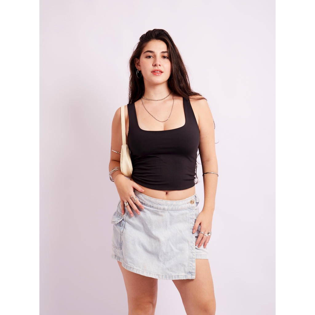 Regata Costa Nua Feminina Cropped Aberto Nas Costas Duplo Tecido Poliamida
