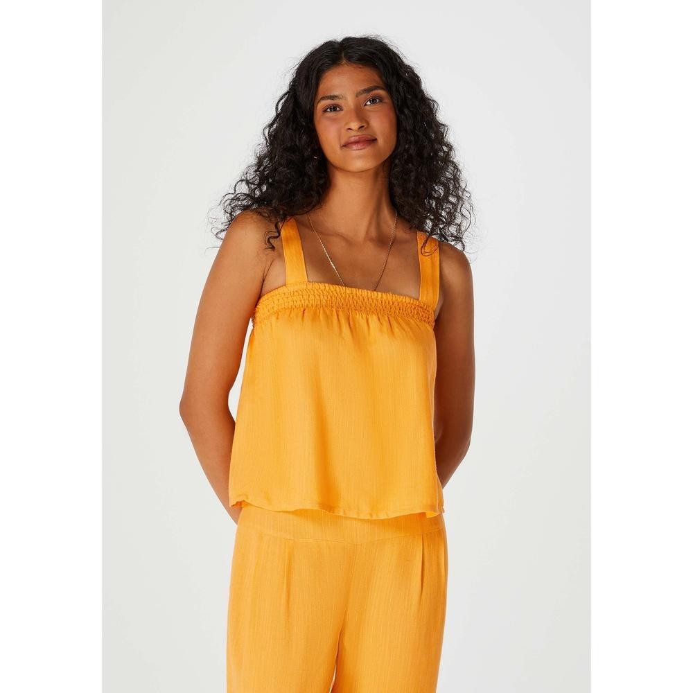 Regata cropped com alças e decote reto, para arrasar nas produções de verão. Elaborada em tecido de algodão com linho, possui modelagem soltinha, alças médias e decote reto com elástico.Detalhes da peça:Em tecidoModelagem regularAlças médiasDecote reto com elástico