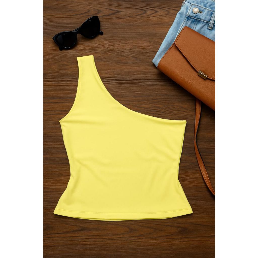Regata Cropped Lisa Feminina– Alça única em Poliamida de Diversas Cores