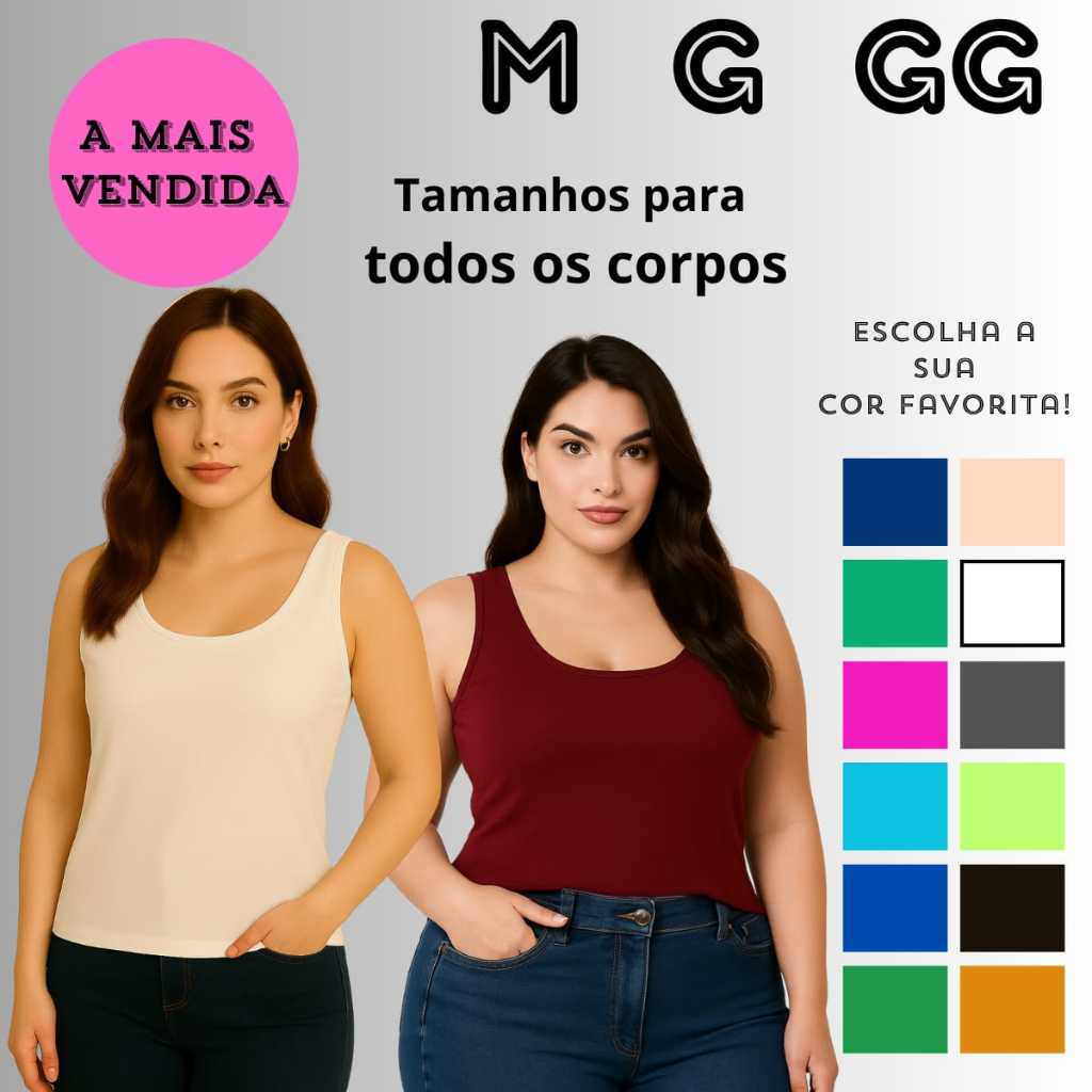 | Regata Feminina Plus Size G1 a G8 Viscolycra Gola Redonda Regata Bá... | R$ 36,90 | 33% | 4.9/5 | 248 |