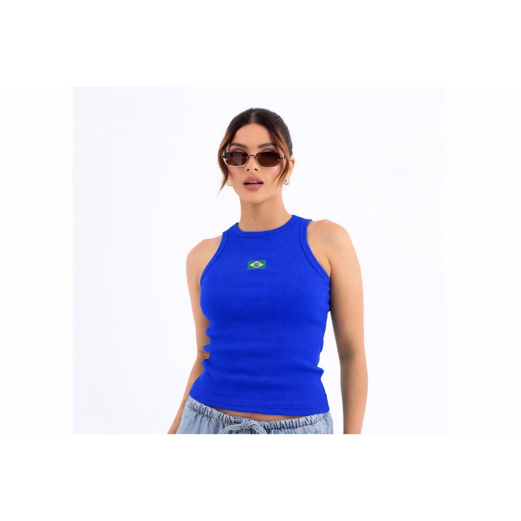 Regata Feminina Brasil Blusa Ribana Canelada Moda Bandeira Bordada tem frete grátis?