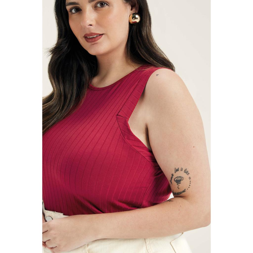 Regata Feminina Canelado de Viscose Marialícia Vermelho