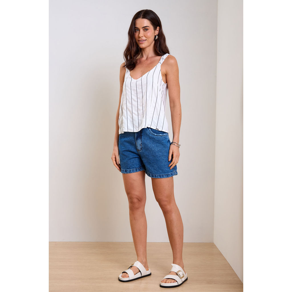 A Regata Feminina com Decote Marialícia é confeccionada em tecido de viscose com lurex. É uma peça delicada e cheia de estilo, perfeita para compor looks femininos e elegantes. O destaque da regata fica por conta das alças com babados, que proporcionam um visual romântico e sofisticado. O decote em V valoriza a silhueta, e o tecido leve oferece conforto e suavidade ao vestir. Ideal para usar em ocasiões casuais ou em eventos que pedem uma produção mais elaborada, essa regata combina perfeitamente com calças ou saias. Adicione essa peça ao seu guarda-roupa e tenha um look versátil e encantador!Modelo veste P Medidas da modelo: 89cm de busto; 96cm de quadril; e 67cm de cintura