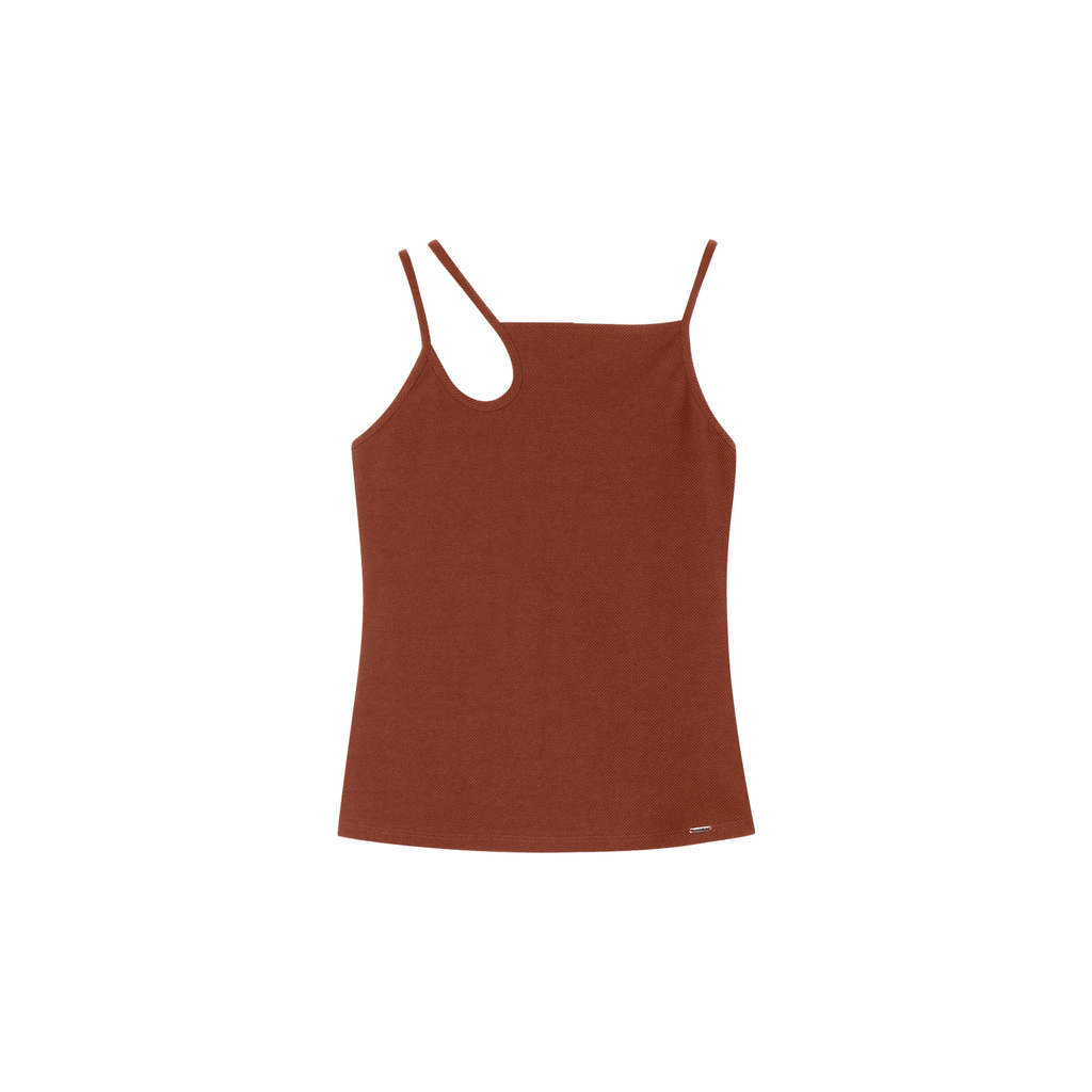 Regata Feminina Decote Assimétrico Marialícia Marrom