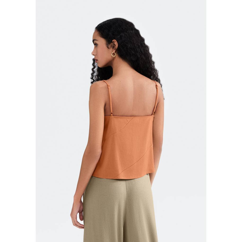 Regata elaborada em tecido de viscose, linho e liocel que garante acabamento rústico. Com construção em recortes diagonais, esta peça combina estilo e conforto de forma única, tornando-a uma escolha versátil e sofisticada para diversas ocasiões.Detalhes da peça:Em tecidoModelagem regularDecote VAlças finas reguláveisRecortes diagonaisDetalhe de pence no busto
