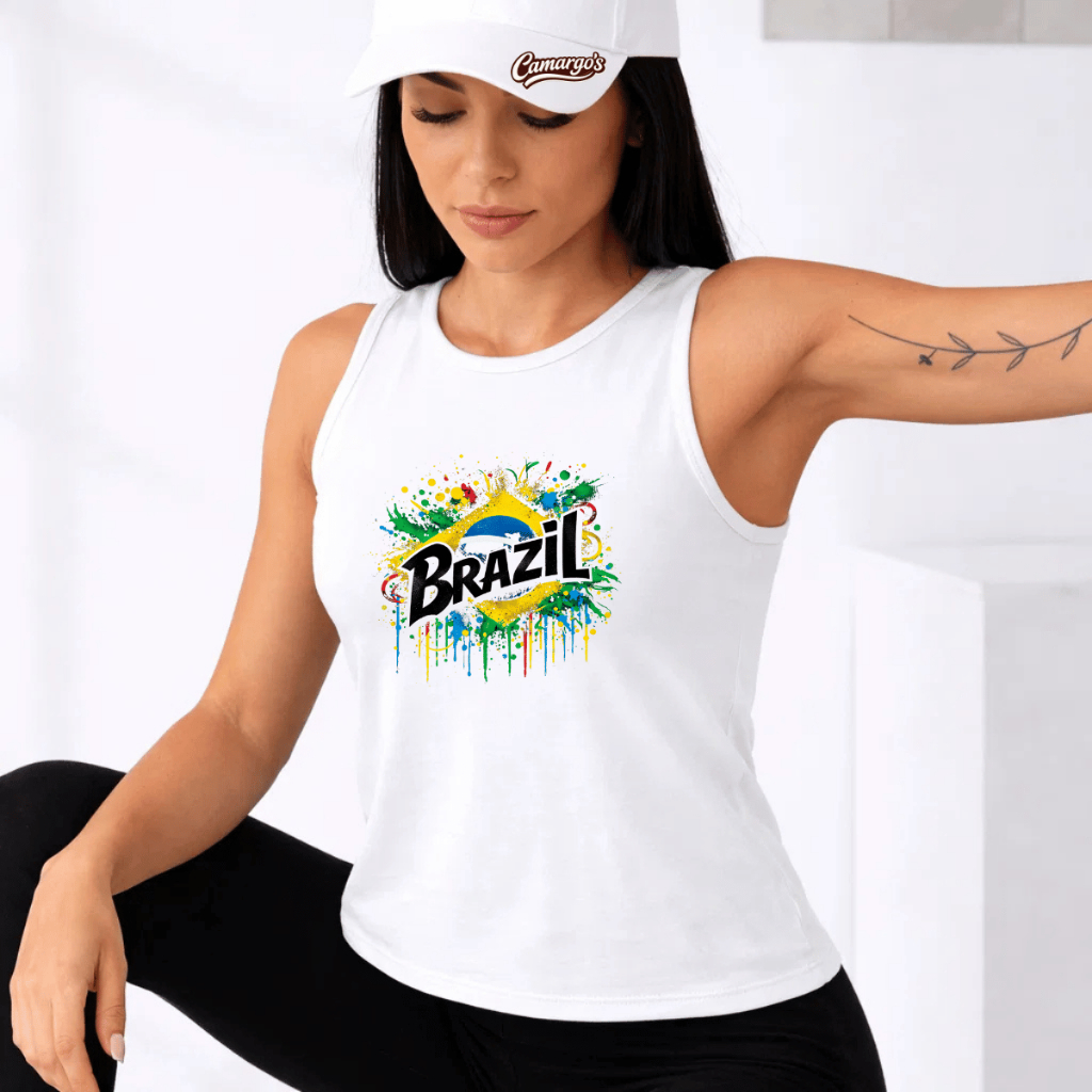 Regata Feminina Estampada Brasil Algodão 100% Premium Academia Fitness Treino Slim Casual Básica Verão