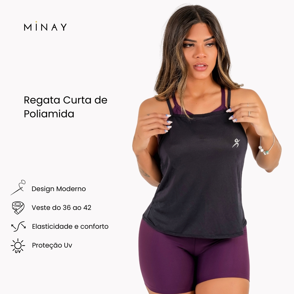 Regata Feminina Fitness Dry Fit 100% Poliamida Modelagem Soltinha Proteção UV Para Academia Minay