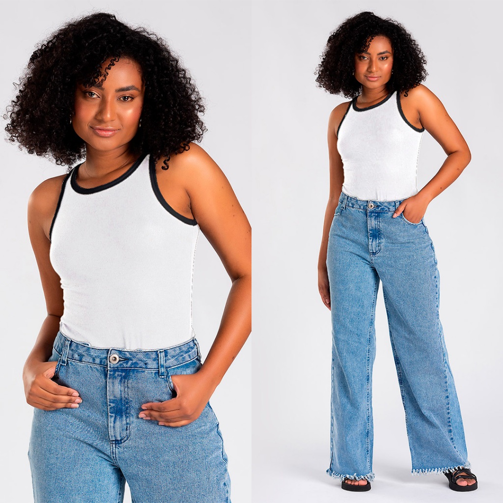 Descubra o Charme da Regata Feminina Friso Contrastante da Flor de Carlota 💃 Elegância e Conforto em Uma Peça A Regata Friso Contrastante é a escolha perfeita para quem busca uma peça elegante e confortável. Com uma modelagem ajustada, ela valoriza o seu corpo, sendo ideal para diversas ocasiões, desde o dia a dia até eventos mais casuais. 🎨 Cores que Combinam com Tudo Disponível em Preto com Branco, Branco com Preto e Nude com Preto, esta regata é versátil e fácil de combinar. Seja qual for a sua escolha, cada cor traz um toque especial para o seu look. 🌿 Qualidade e Conforto A composição varia de acordo com a cor: nas regatas preto com branco, ela é feita de viscose e elastano, oferecendo suavidade e um pouco de elasticidade. Já nas cores branco com preto e nude com preto, a regata é feita de algodão e elastano, garantindo conforto e durabilidade. 📏 Tamanhos para Todas Confira nossa tabela de medidas para encontrar o tamanho perfeito para você: PP: Comprimento 48cm | Busto 66cm | Barra 70cm P: Comprimento 50cm | Busto 72cm | Barra 76cm M: Comprimento 52cm | Busto 78cm | Barra 82cm G: Comprimento 54cm | Busto 84cm | Barra 88cm GG: Comprimento 56cm | Busto 90cm | Barra 94cm *Na foto, a modelo veste tamanho P. 🌸 Sinta-se Única com a Flor de Carlota Ao escolher a Regata Friso Contrastante, você não só adquire uma peça básica e estilosa, mas também uma expressão da moda contemporânea, pensada especialmente para mulheres que valorizam detalhes e qualidade. 🥰 Adicione ao Seu Guarda-Roupa Versátil, confortável e elegante, a Regata Feminina Friso Contrastante é uma adição essencial ao seu guarda-roupa. Escolha a sua cor favorita e prepare-se para arrasar!