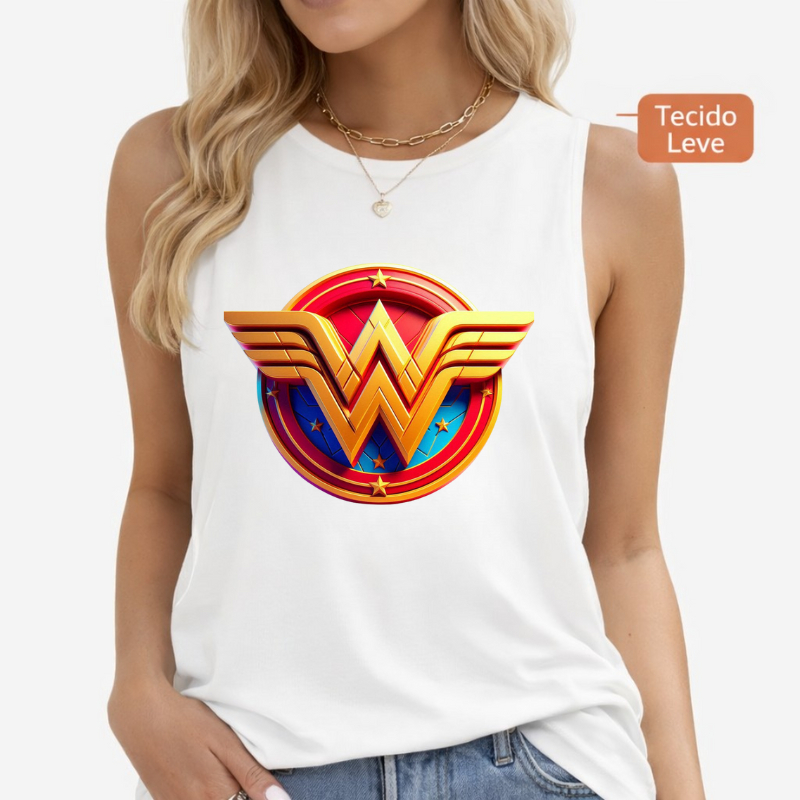 Regata Feminina Heroína Estampada Regata Fitness Casual Confortável Branco Preto Vermelho P ao G