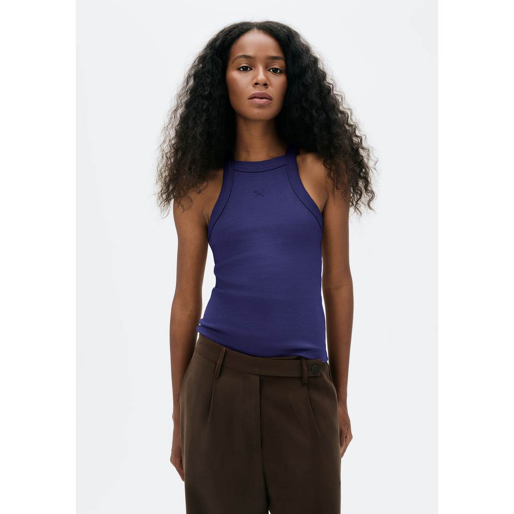 Regata feminina halter neck elaborada em ribana canelada de algodão com elastano. Possui silhueta justa ao corpo, comprimento tradicional, sendo mais cavada na frente e costas. O bordado de peixinho centralizado abaixo do decote frente deixa o visual ainda mais único.Detalhes da peça:Ribana caneladaModelagem slimDecote halter neckBordado no peito