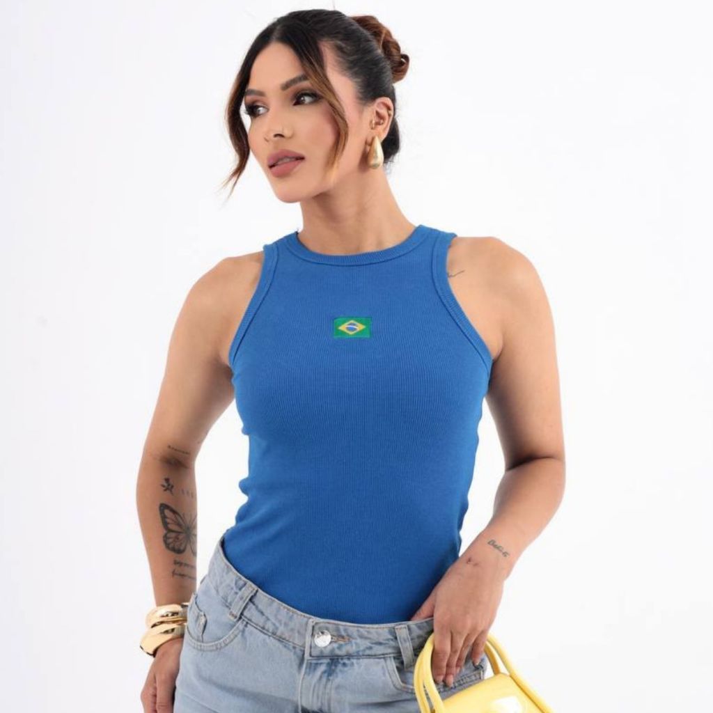 Regata Feminina Ribana Regata do Brasil Estilo Gringa Brasilidades Blusa Brasil Copa Do Mundo Canelada Algodão