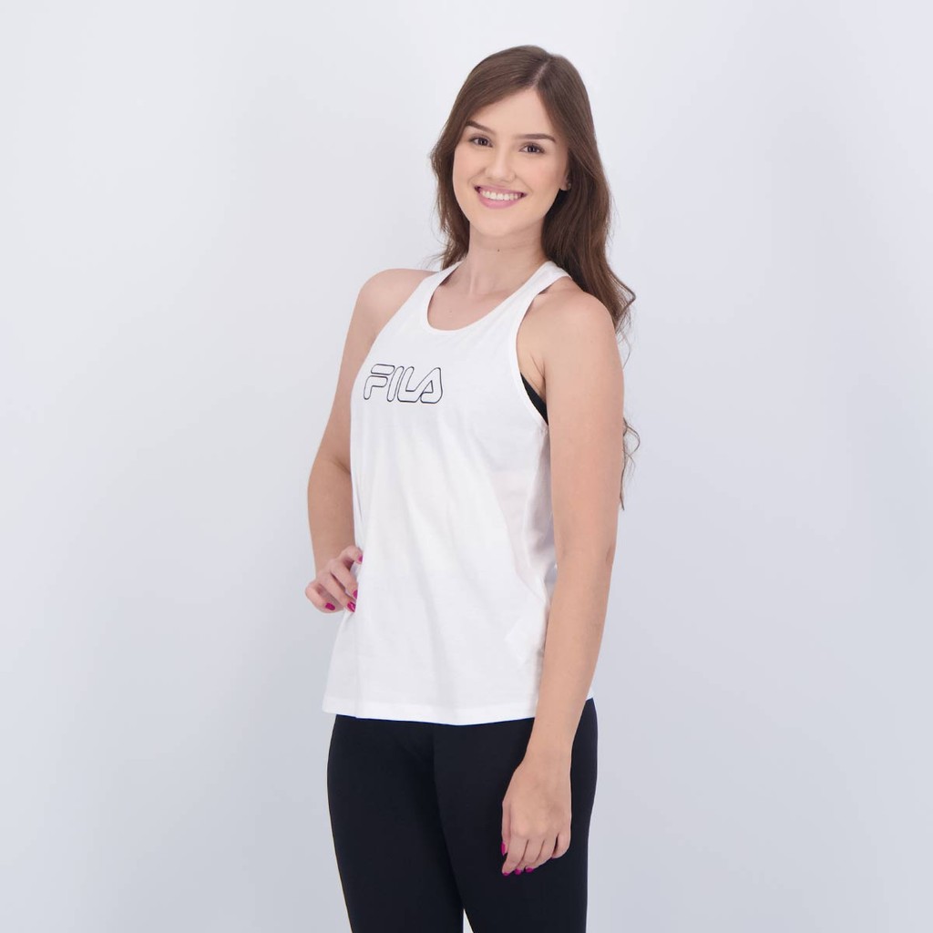 Composição: 100% Algodão Cor Predominante: Branca Indicada para: Casual Gênero: Feminino Origem: Nacional Logo: Estampada Manga: Regata Gola: Careca Dimensões aproximadas (A x L): P: 60 x 43 cm M: 62 x 45 cm G: 64 x 47 cm GG: 66 x 49 cm