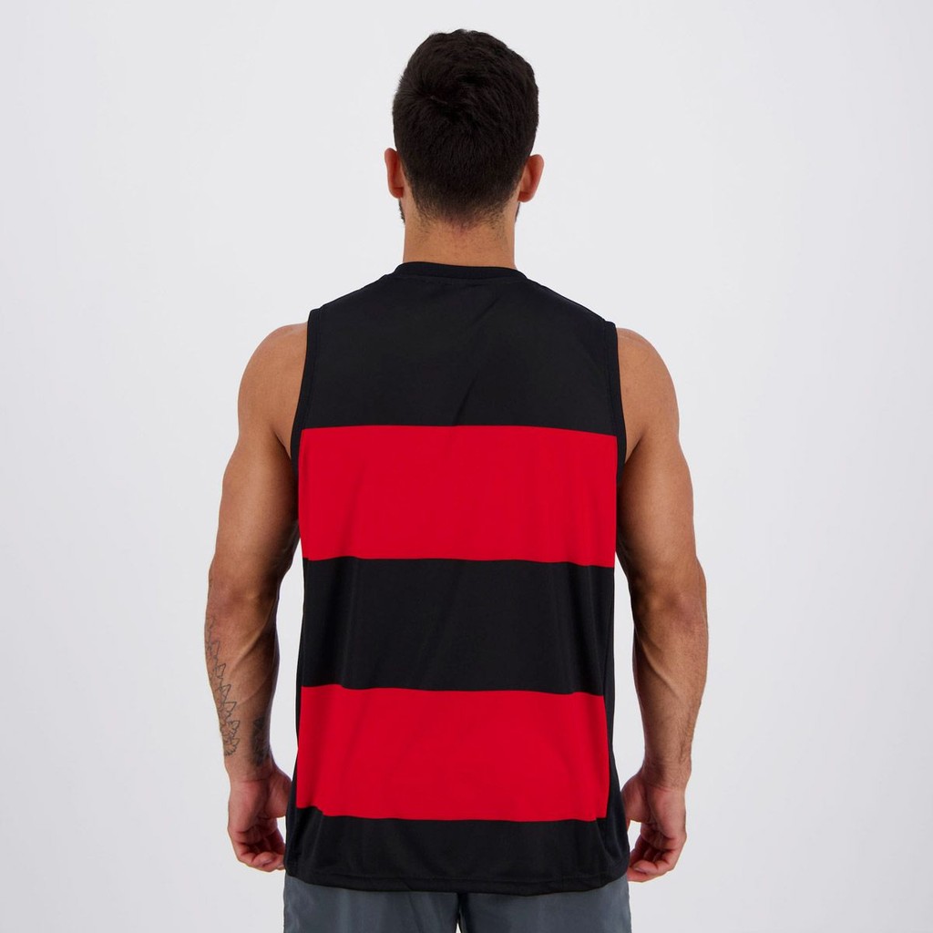 A regata do Flamengo, modelo Hoop, é a pedida certa para você mostrar sua torcida pela equipe de basquete rubro-negra. Ela é confeccionada em poliéster respirável que garante total conforto durante o uso. Seu design conta com faixas horizontais em vermelho e preto, apresentando as laterais na cor preta. O escudo do time aparece bordado no tórax com acabamento em veludo. Com excelente caimento ao corpo, ela possui gola V, que complementa os detalhes, assim como a manga regata que promove maior flexibilidade aos movimentos. Composição: 100% PoliésterOrigem: Nacional Escudo: Bordado Manga: Regata Gola: VDimensões Aproximadas (A x L):P: 70 x 52 cmM: 72 x 54 cmG: 74 x 56 cmGG: 76 x 58 cm