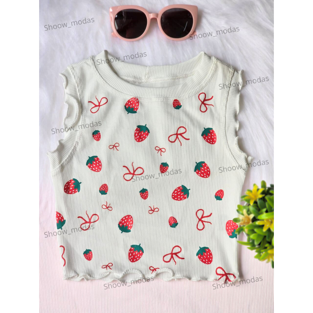 Regata Infantil Canelado com estampa Moranguinho - Moda Blogueira