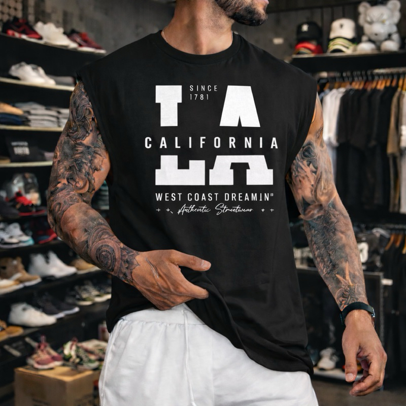 Regata Masculina Algodão Camiseta Regata Oversized LA California Várias Cores Caimento Perfeito