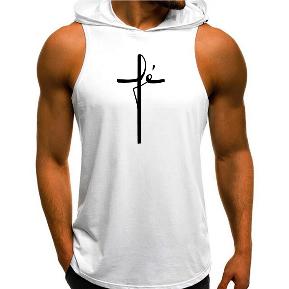 Regata Masculina Com Capuz Fé Cristã Cruz Camiseta Academia Treino