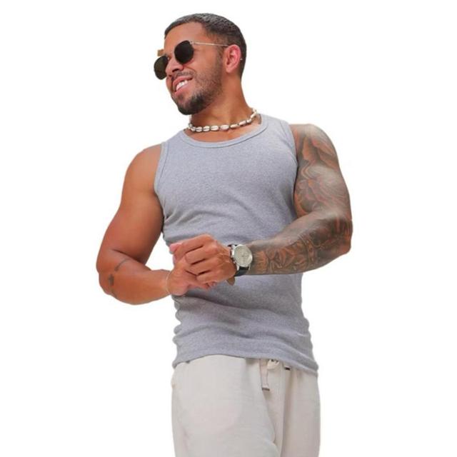 Regata Masculina Modelo Americano Ribana Canelada Algodão e Elastano