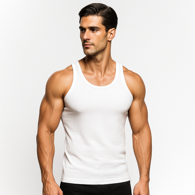 Regata Masculina Modelo Americano Ribana Canelada Algodão e Elastano