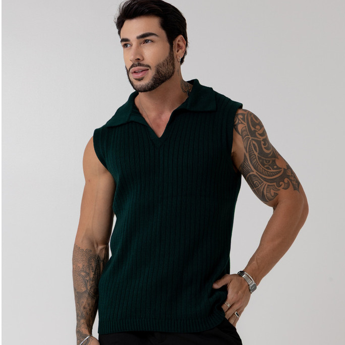 regata masculina sem manga gola polo tricot blusa verão primavera homens casual