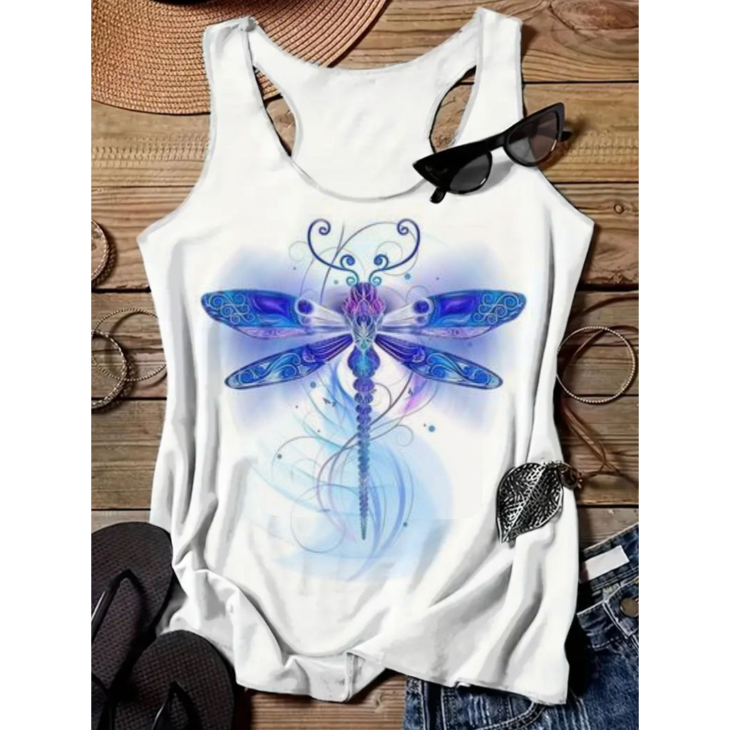 Regata Nadador Feminina coleção Libélulas coloridas verão good vibe , básica, PLUS SIZE