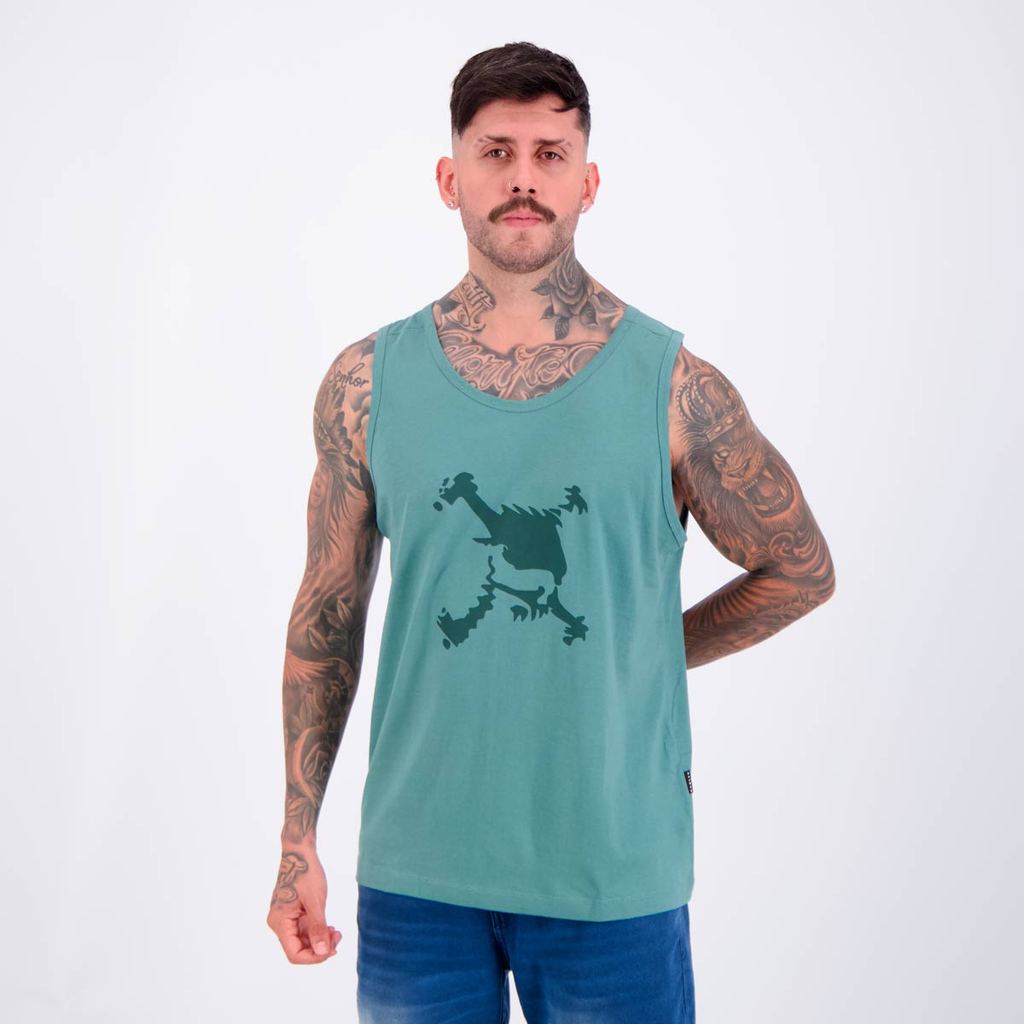 Composição: 100% Algodão Cor predominante: Verde Indicada para: Casual Gênero: MasculinoOrigem: NacionalLogo: EstampadoManga: RegataGola: CarecaDimensões Aproximadas (A x L):P: 73 x 56 cmM: 75 x 58 cmG: 77 x 60 cmGG: 79 x 62 cm