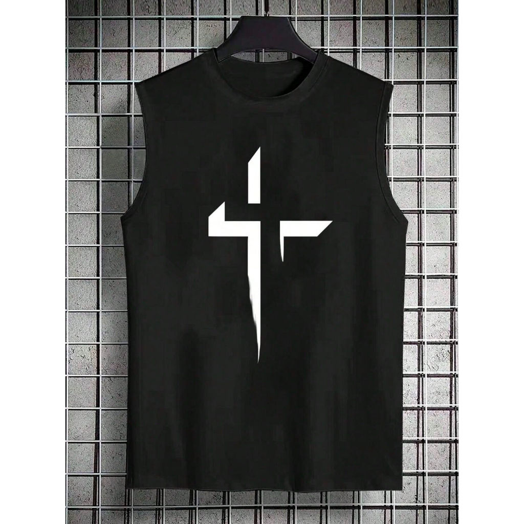 Regata Oversized Camiseta Masculina Cruz Unissex Sem Manga Básica Verão