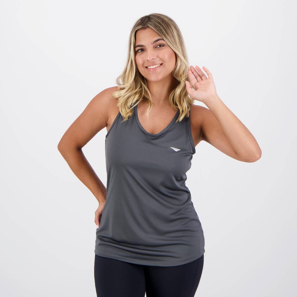 Composição: 100% PoliésterCor predominante: ChumboIndicado para: TreinoGênero: FemininoOrigem: NacionalLogo: EstampadaManga: RegataGola: CarecaDimensões aproximadas (A x L):P: 62 x 41 cmM: 64 x 43 cmG: 66 x 45 cmGG: 68 x 47 cm