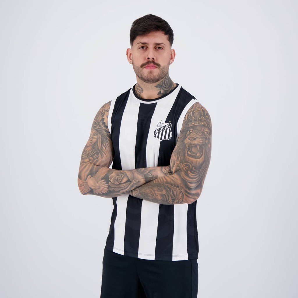 Composição: 100% PoliésterCor predominante: PretaIndicado para: CasualEscudo: EstampadoGênero: MasculinoOrigem: NacionalClube: SantosManga: RegataGola: CarecaDimensões aproximadas (A x L):P: 71 x 53 cmM: 73 x 55 cmG: 75 x 57 cmGG: 77 x 59 cm