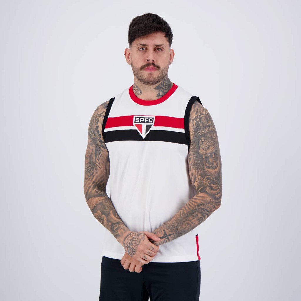 Composição: 100% PoliésterCor predominante: BrancaIndicada para: CasualEscudo: EstampadoGênero: Masculino Clube: São PauloManga: RegataGola: CarecaDimensões Aproximadas (A x L):P: 70 x 53 cmM: 72 x 55 cmG: 74 x 57 cmGG: 76 x 59 cm