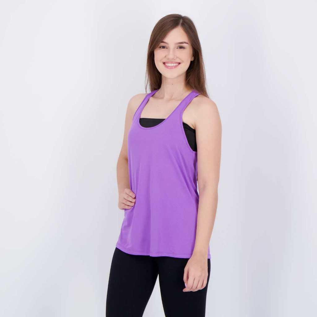 Composição: 100% Poliamida Cor predominante: Roxa Indicado para: Treino Gênero: Feminino Origem: Nacional Logo: Estampada Manga: Regata Gola: Careca Dimensões aproximadas (A x L): P: 62 x 42 cm M: 64 x 44 cm G: 66 x 46 cm GG: 68 x 48 cm